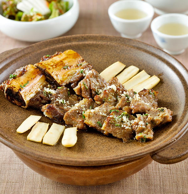 알맞게 구워낸 소갈비를 주요리로 하여 임금님의 수라상을 현대인들의 정서에 맞추어 짧은 코스로 재구성한 것입니다.
